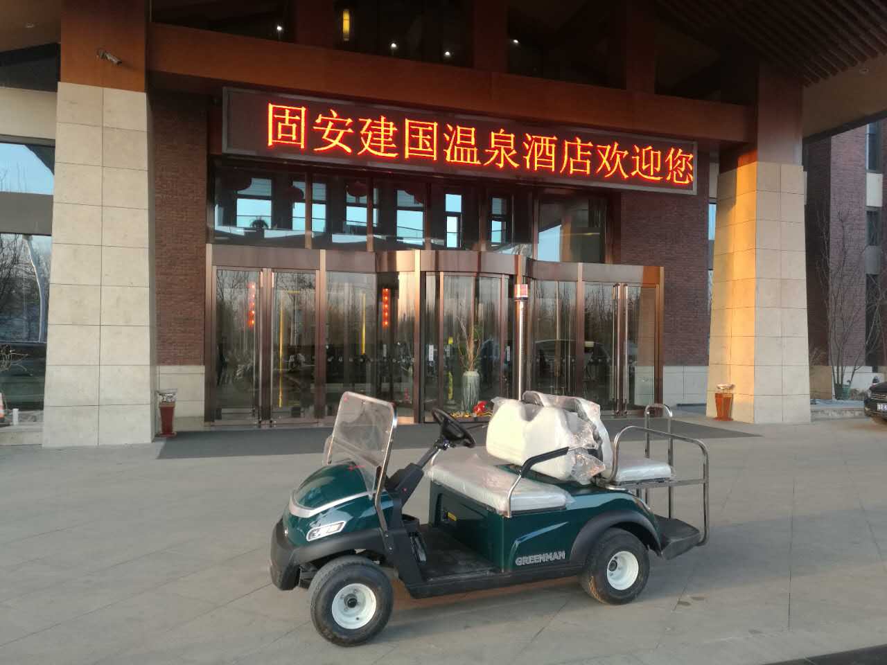 2017年3月8日在河北省廊坊市固安溫泉休閑商務產(chǎn)業(yè)園交車1臺四座電動觀光車。