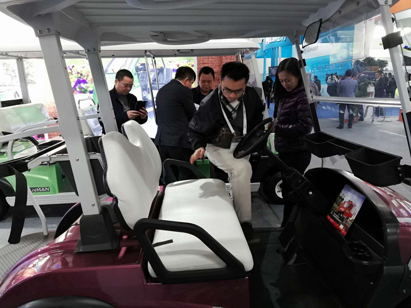 展會上,我公司電動車輛吸引了眾多參觀者的目光,來自景區(qū),游樂場等各行各業(yè)有合作意向的專業(yè)客戶和我公司工作人員進(jìn)行詳細(xì)地咨詢與洽談。