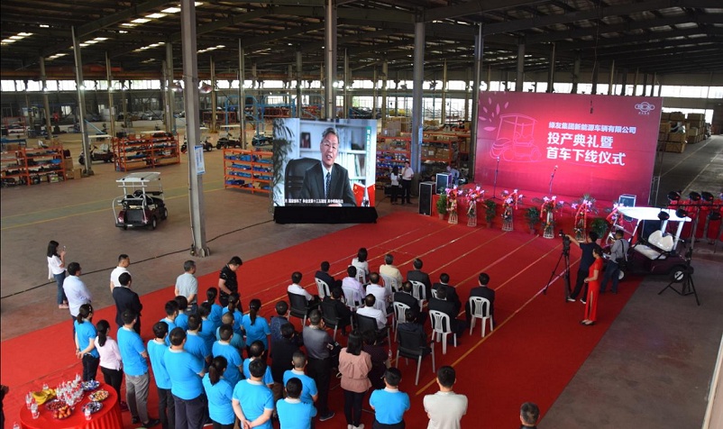 5月5日上午,在一串喜慶的鞭炮聲中,綠友集團新能源車輛有限公司投產典禮暨首車下線儀式正式開始。