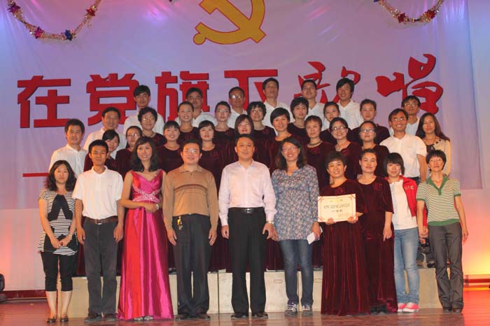 追憶先烈奮戰(zhàn)的歲月,勿忘昨日戰(zhàn)火的灼傷。中國共產(chǎn)黨建黨九十周年之際,綠友集團(tuán)所在地政府組織了“在黨旗下歌唱”五月鮮花文藝大賽。綠友集團(tuán)積極籌措?yún)⑴c此次比賽,結(jié)果不負(fù)眾望,榮獲一等獎(jiǎng)的佳績。