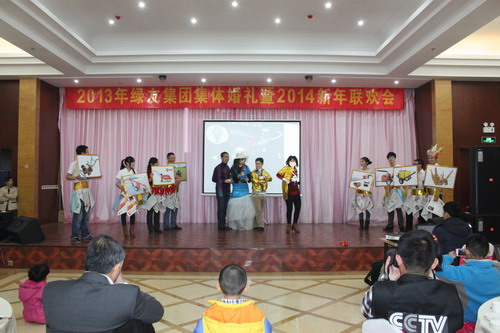 12月29日,“2013年綠友集團集體婚禮暨2014年元旦聯歡會”在總部所在地附近的德濟緣酒店舉辦,總部人員和北京綠友園林、北京工廠的全體人員參加了活動;在李敏總裁的關心下,會務組人員還特別邀請了8名退休員工前來參加活動。