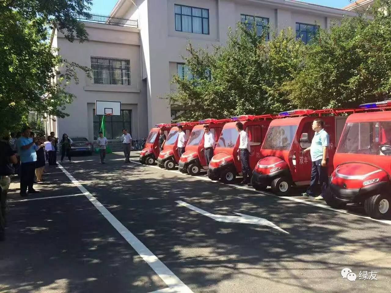 8月4日上午9點半,綠友集團向雙豐街道辦事處交付了一批全電動高壓細水霧式微型消防車。為突出建設平安社區的決心,雙豐街道辦事處舉行了隆重的微型電動消防車發放儀式。