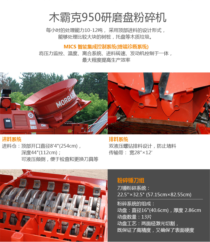 950立式粉碎機(jī),每小時(shí)的處理能力10-12噸, 采用頂部進(jìn)料的設(shè)計(jì)形式,能夠處理比較大塊的樹樁,托盤等木質(zhì)垃圾。