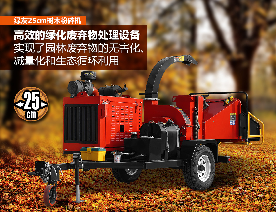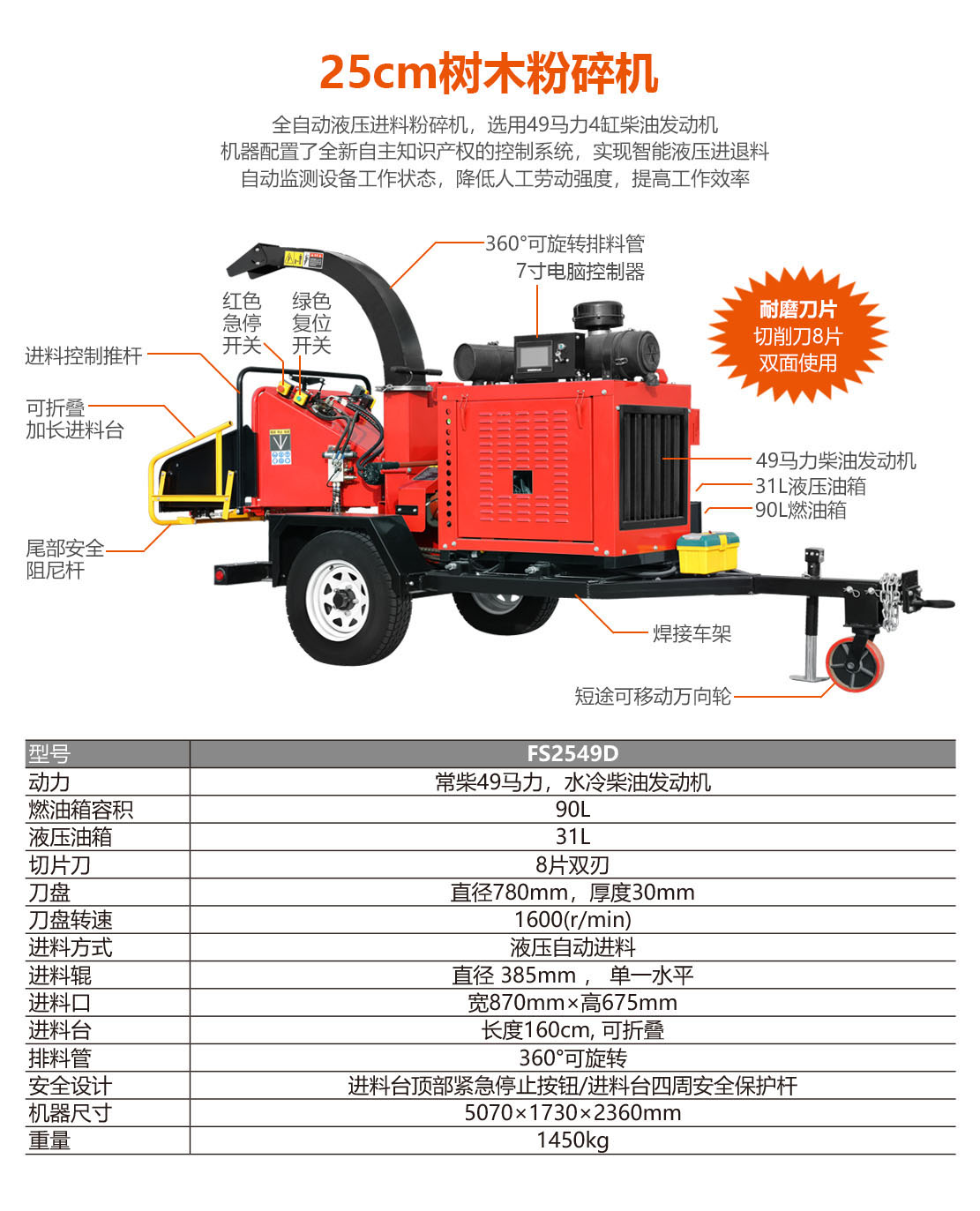 25cm全自動液壓進料粉碎機,選用49馬力環保柴油發動機。